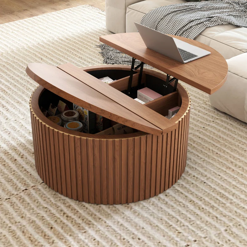 Lift Top Coffee Table With Storage, Fluted Round Coffee Tables